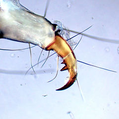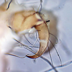 尾肢は長い。中央分節の外側に小さな歯状突起が1本あり、そのやや内側にほとんど痕跡的なものがもう1本ある(アングル次第では見えない)。